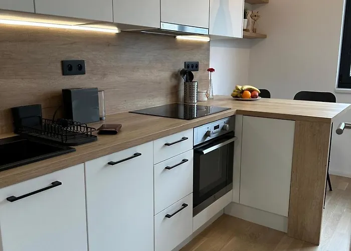 W apartamencie znajdują się piekarnik i zmywarka do naczyń w pełnowymiarowej kuchni. Spacer do stacji metra Namesti Miru zajmuje niedaleko.